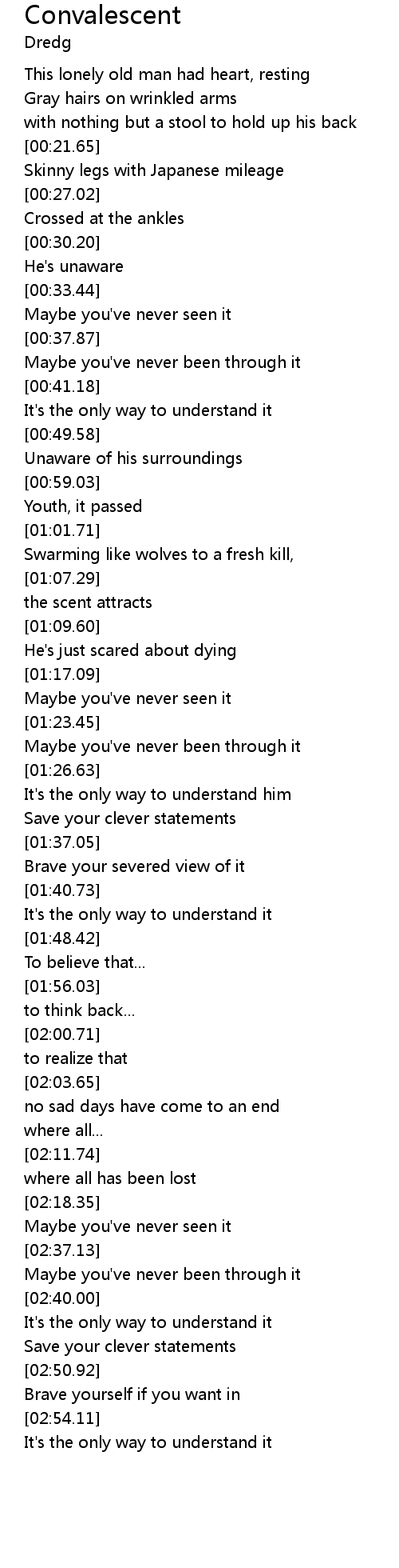 | [00:12.84] | Gray hairs on wrinkled arms |