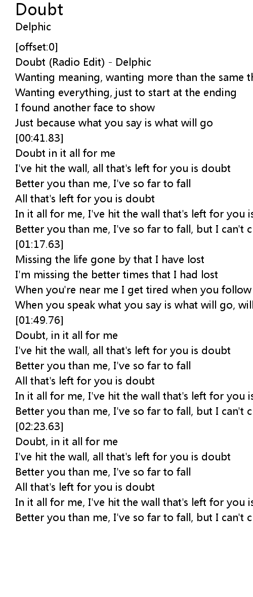 | [00:00.62] | Doubt (Radio Edit) - Delphic |
