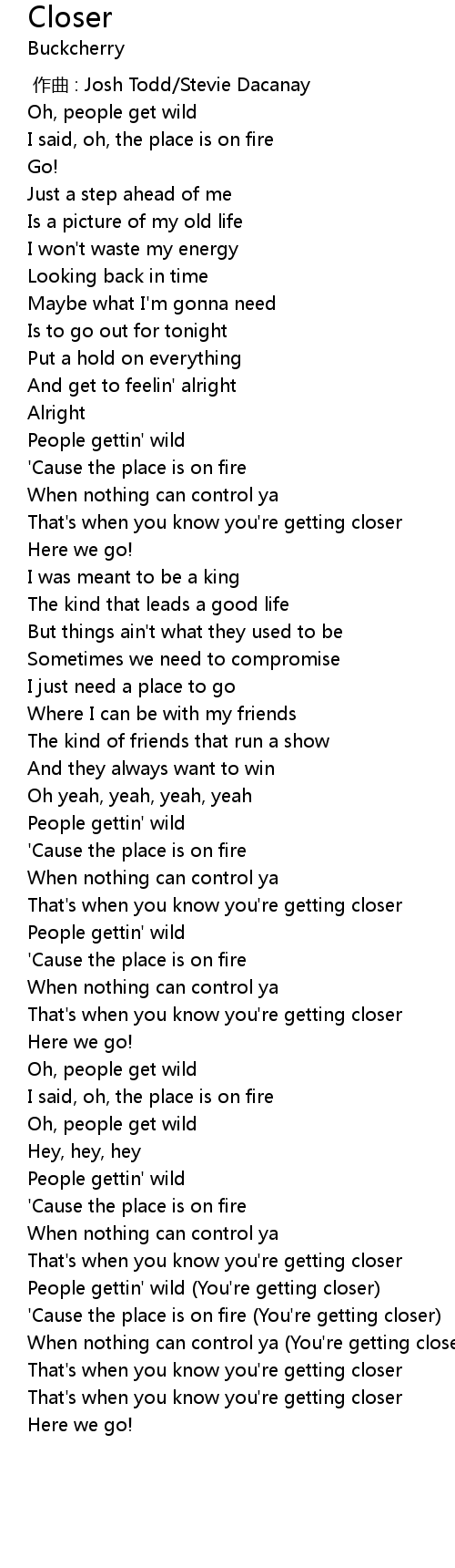 | [03:16.402] | People gettin' wild You' re getting closer |