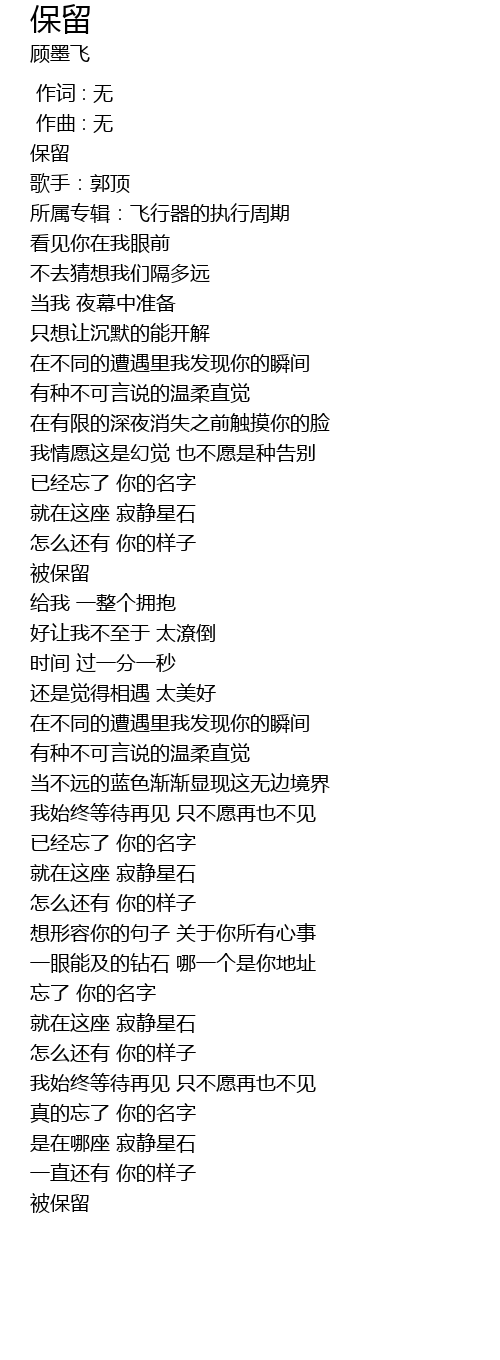 保留 bao liu Lyrics
