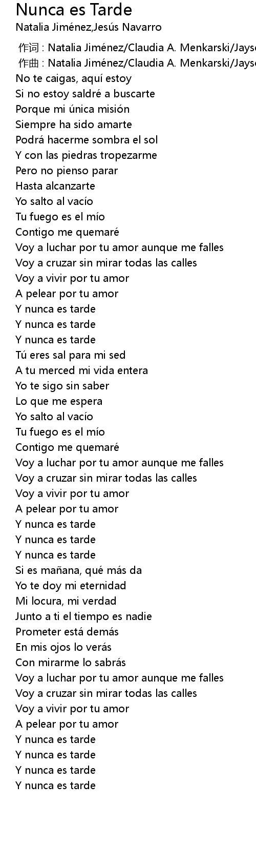 | [00:00.000] | 作词 : Natalia Jiménez/Claudia A. Menkarski/Jayson DeZuzio |
