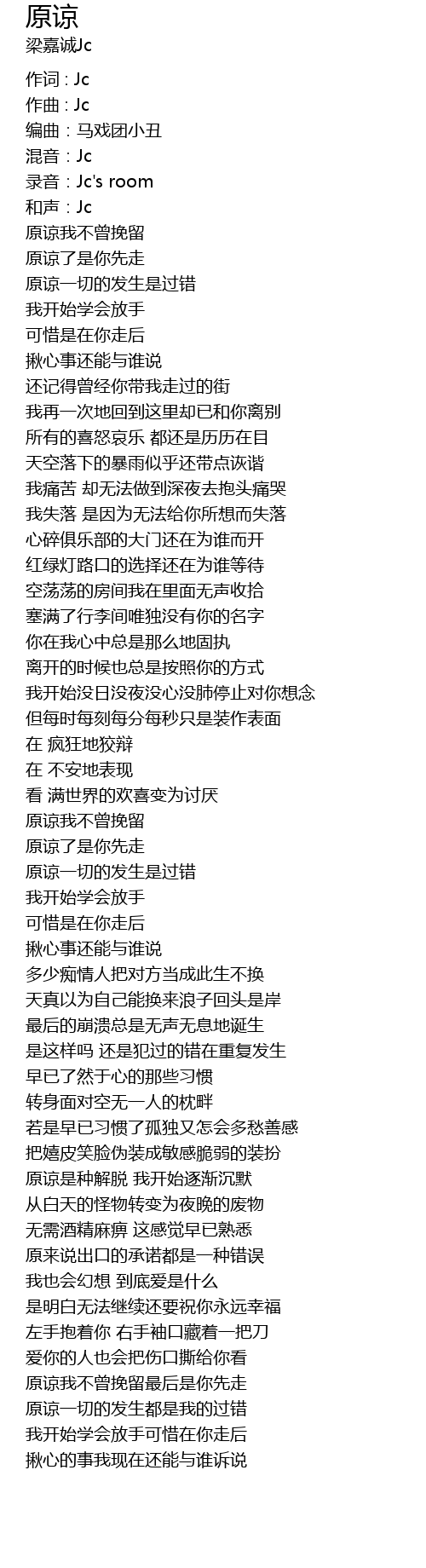 | yuán liàng wǒ bù céng wǎn liú zuì hòu shì nǐ xiān zǒu | |