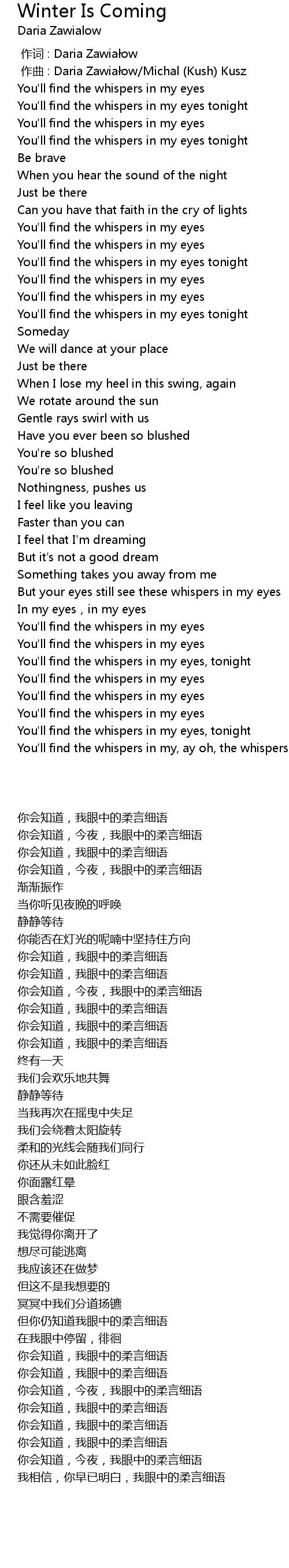 | [03:54.46] | You'll find the whispers in my, ay oh, the whispers in my eyes |