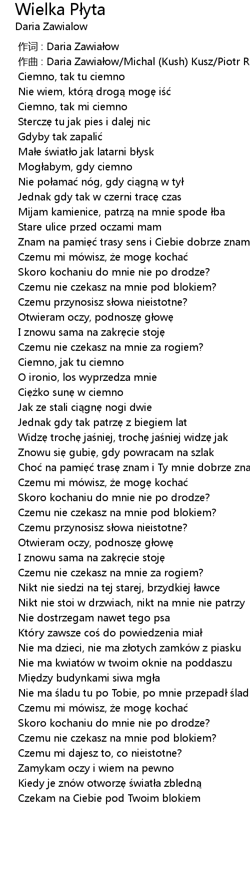 | [00:00.000] | 作词 : Daria Zawiałow |