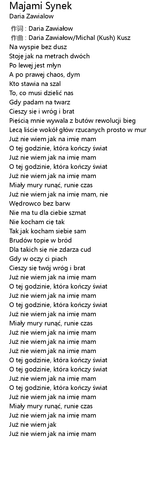 | [00:00.000] | 作词 : Daria Zawiałow |