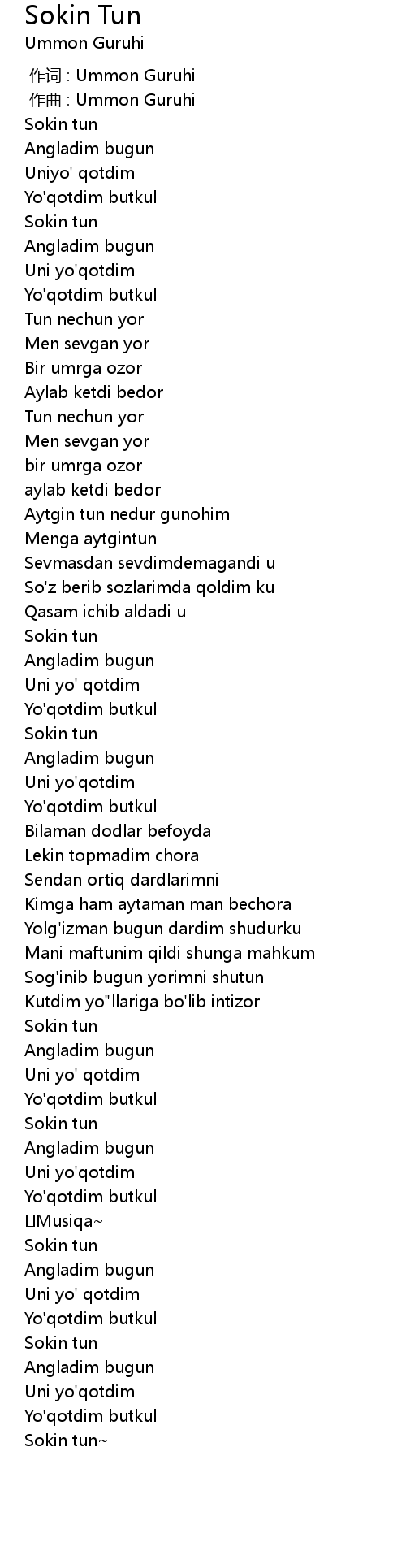 | [00:00.000] | 作词 : Ummon Guruhi |