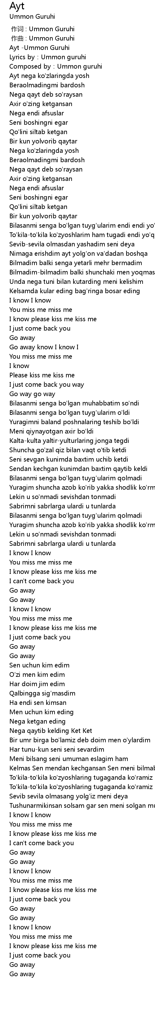 | [00:00.720] | Lyrics by: Ummon guruhi |