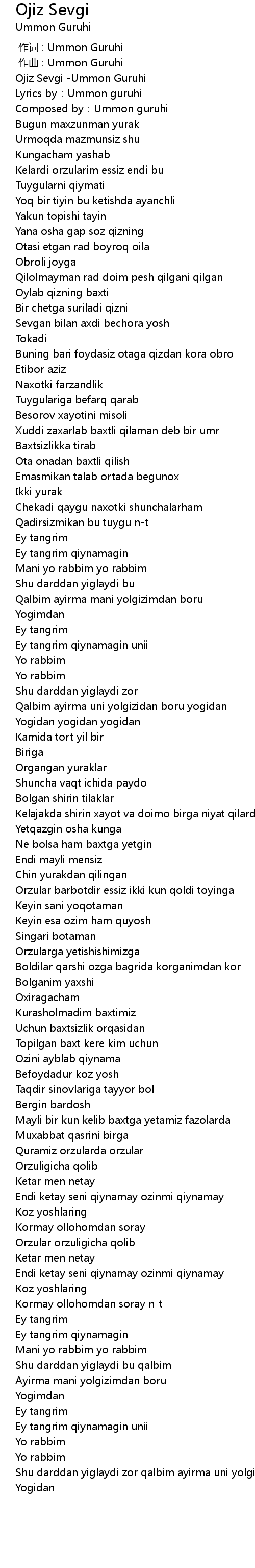 | [00:00.209] | Ojiz Sevgi -Ummon Guruhi |