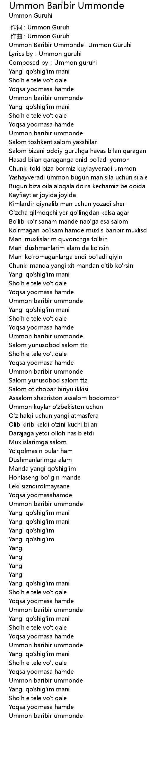 | [00:00.30] | Ummon Baribir Ummonde -Ummon Guruhi |