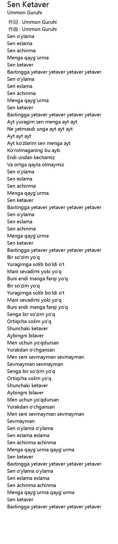 | [00:39.78] | Baxtingga yetaver yetaver yetaver yetaver |