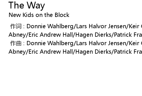 | [00:00.000] | 作曲 : Donnie Wahlberg/Lars Halvor Jensen/Keir Gist/Terence Abney/Eric Andrew Hall/Hagen Dierks/Patrick Francois Arondel/Stevie Wonder |