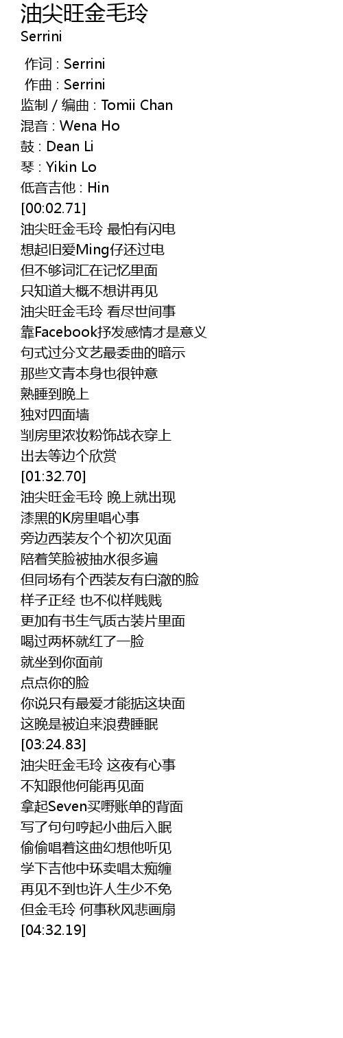 | [03:39.68] | 油尖旺金毛玲 这夜有心事 |