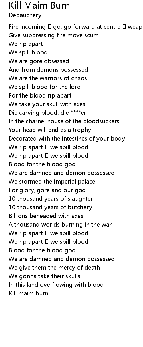| Kill maim burn... |