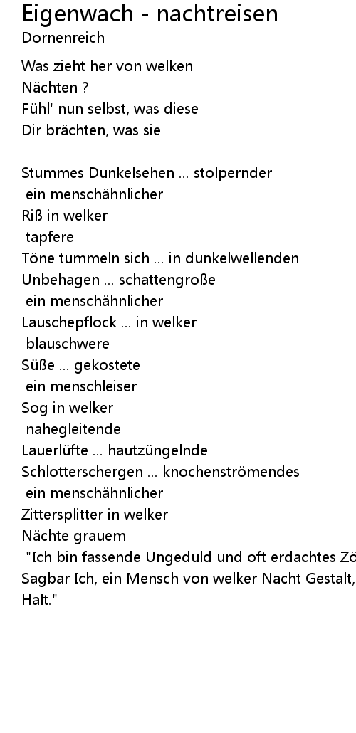 | Song | Eigenwach - nachtreisen |