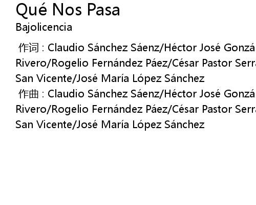 | [00:00.000] | 作曲 : Claudio Sánchez Sáenz/Héctor José González Rivero/Rogelio Fernández Páez/César Pastor Serrano/Jaime Aznar Martínez De San Vicente/José María López Sánchez |