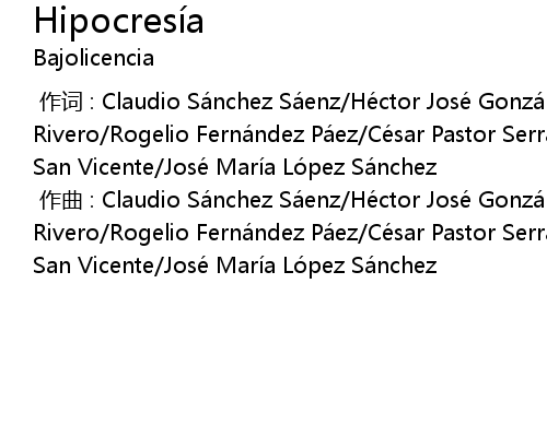 | [00:00.000] | zuò cí : Claudio Sá nchez Sá enz Hé ctor José Gonzá lez Rivero Rogelio Ferná ndez Pá ez Cé sar Pastor Serrano Jaime Aznar Martí nez De San Vicente José Marí a Ló pez Sá nchez |