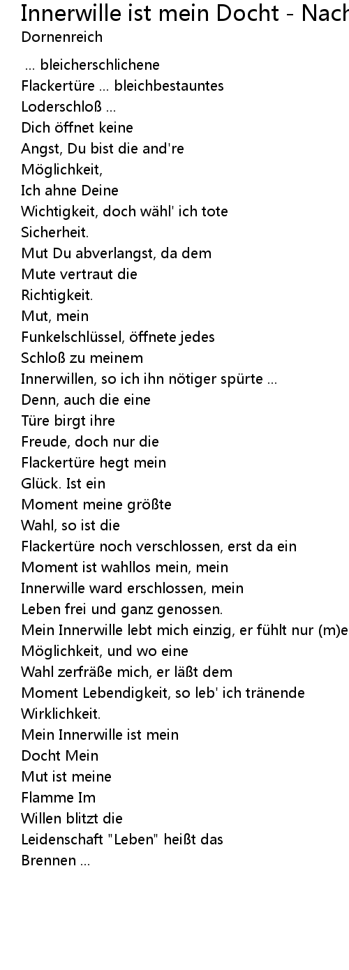 | Song | Innerwille ist mein Docht - Nachtreisen |