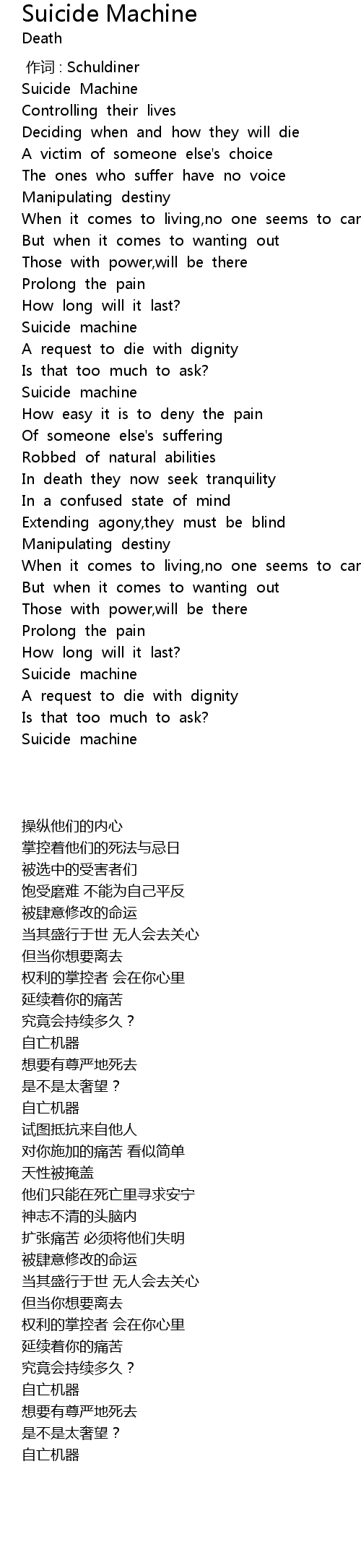 | [01:46.29] | Suicide machine |