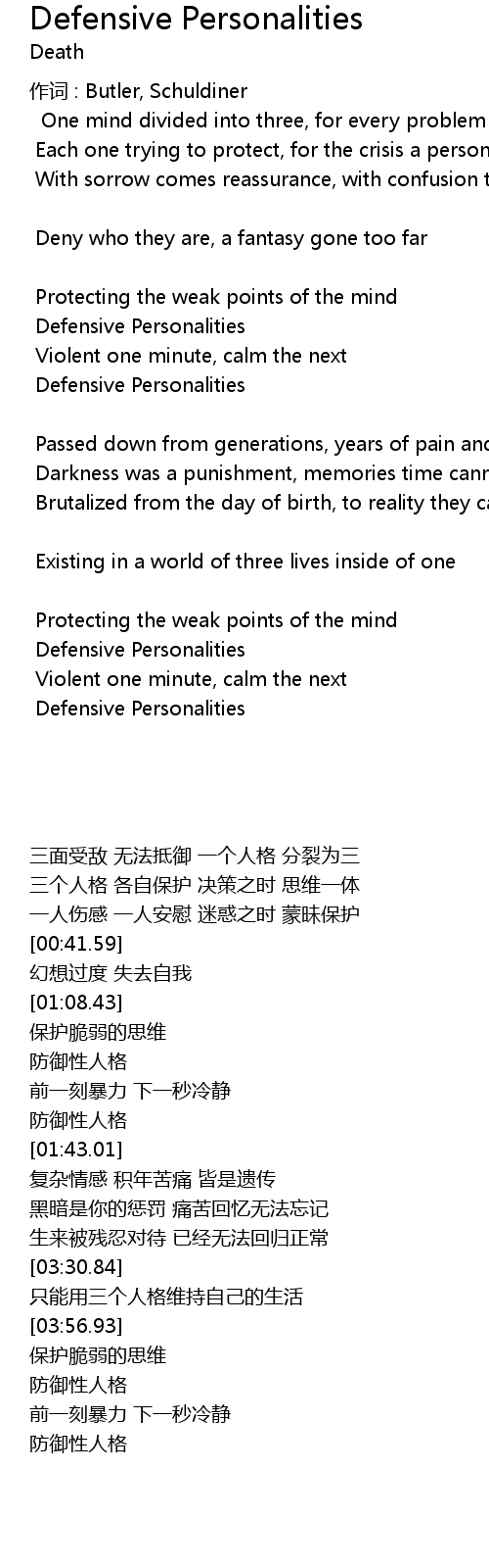 | Song | Defensive Personalities |