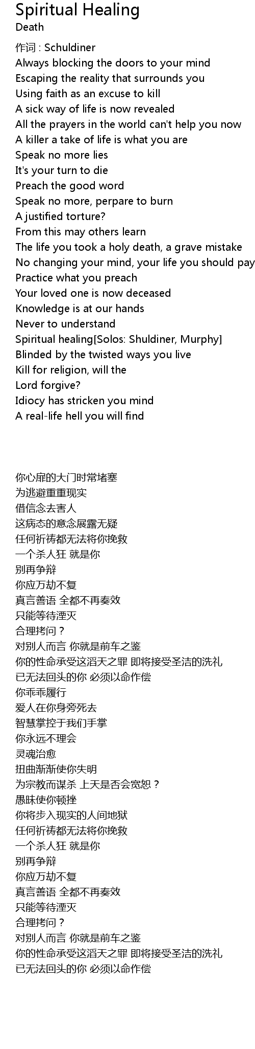 | Spiritual healing[Solos: Shuldiner, Murphy] | |