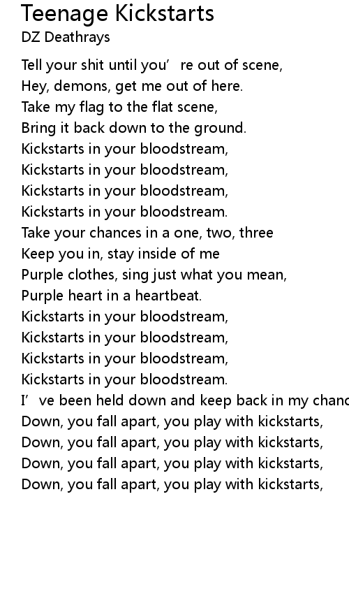 | Song | Teenage Kickstarts |