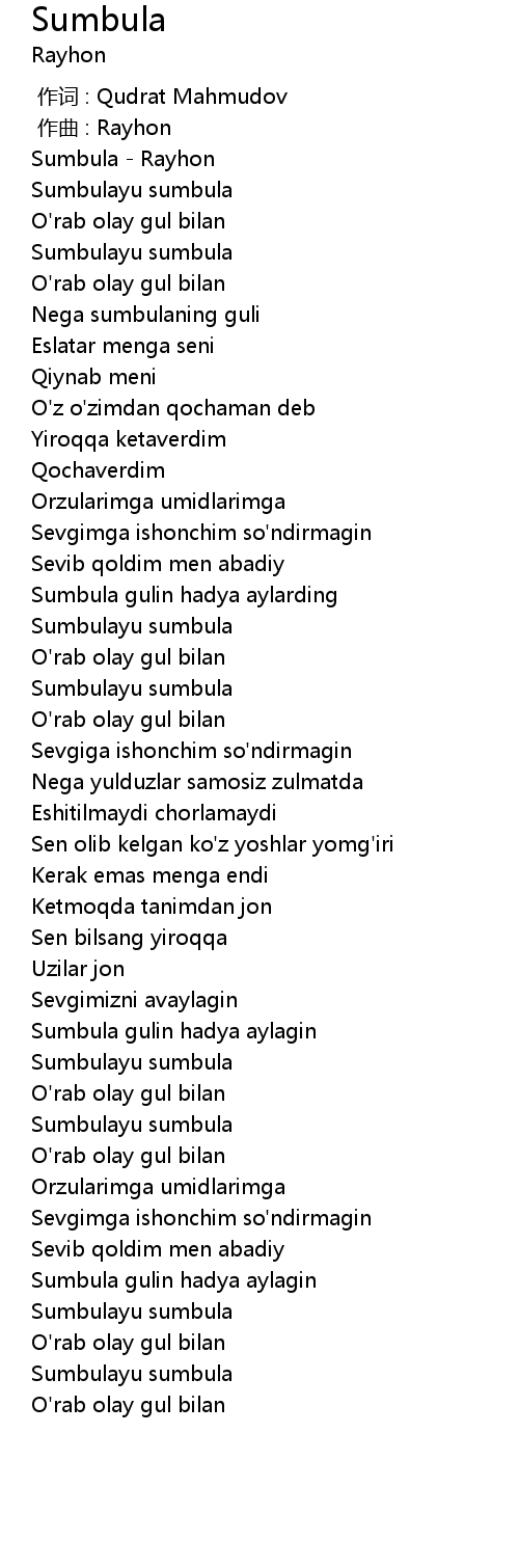 | [00:00.100] | Sumbula - Rayhon |