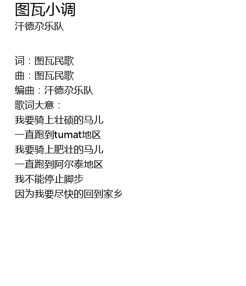 | 词:图瓦民歌 | |