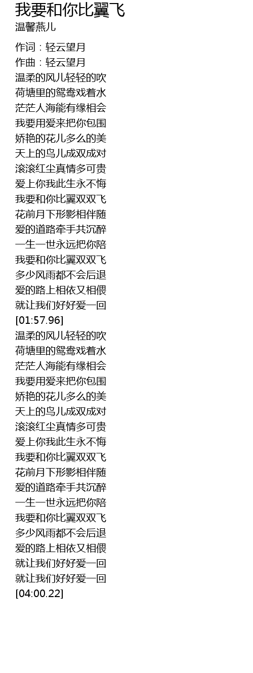 | [01:33.63] | wǒ yào hé nǐ bǐ yì shuāng shuāng fēi |