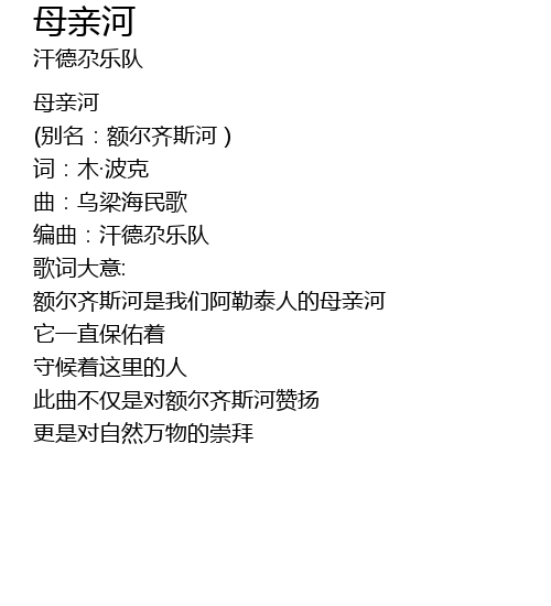 | 此曲不仅是对额尔齐斯河赞扬 | |