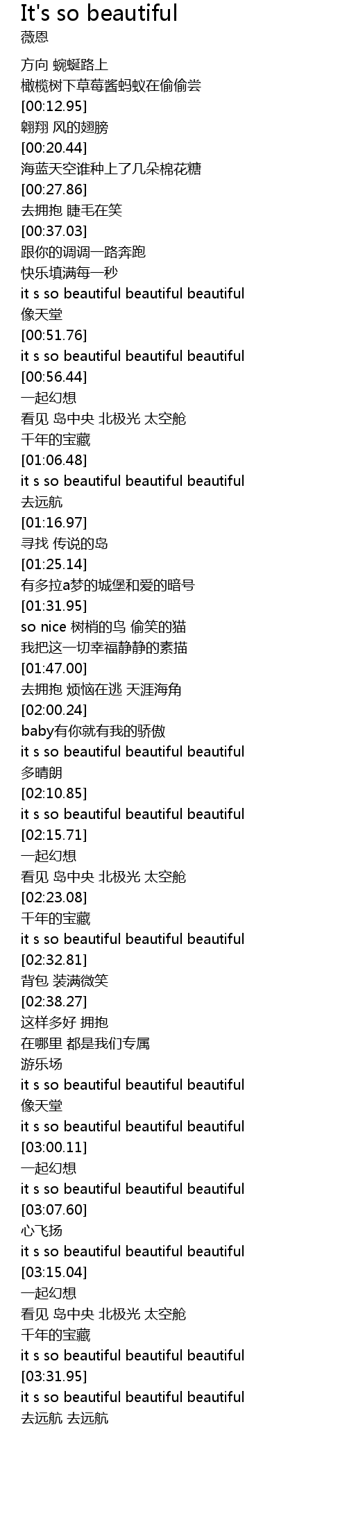 | [00:44.83] | it s so beautiful beautiful beautiful |