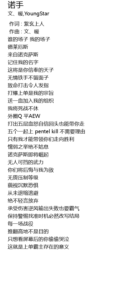 | [00:26.210] | 诺克萨斯即将崛起 |