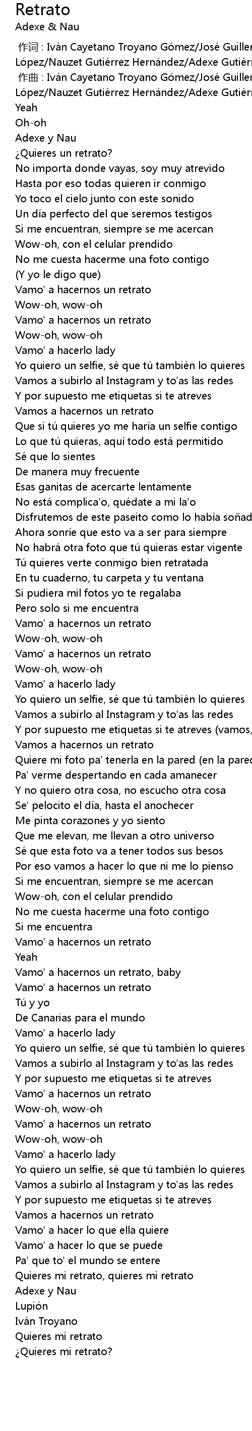 | [00:33.88] | Vamo' a hacernos un retrato |