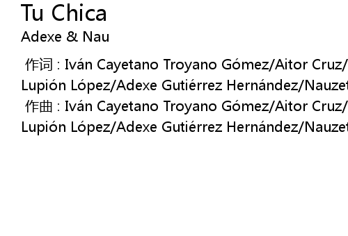 | [00:00.000] | zuò qǔ : Ivá n Cayetano Troyano Gó mez Aitor Cruz José Guillermo Lupió n Ló pez Adexe Gutié rrez Herná ndez Nauzet Gutié rrez Herná ndez |
