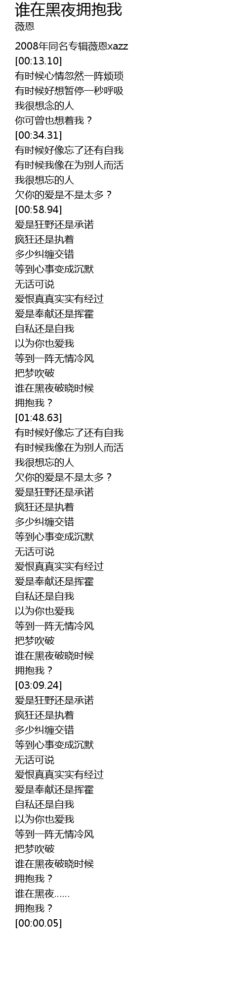 | [00:10.08] | 2008年同名专辑薇恩xazz |