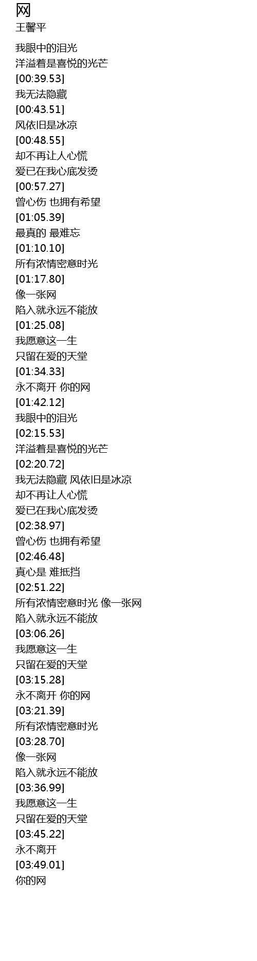 | [03:16.33] | yǒng bù lí kāi nǐ de wǎng |
