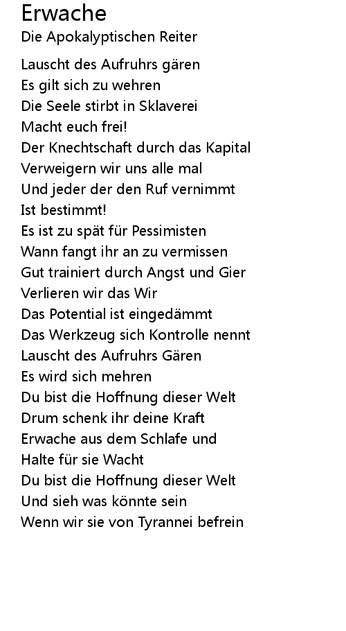 | Lauscht des Aufruhrs g ren | |