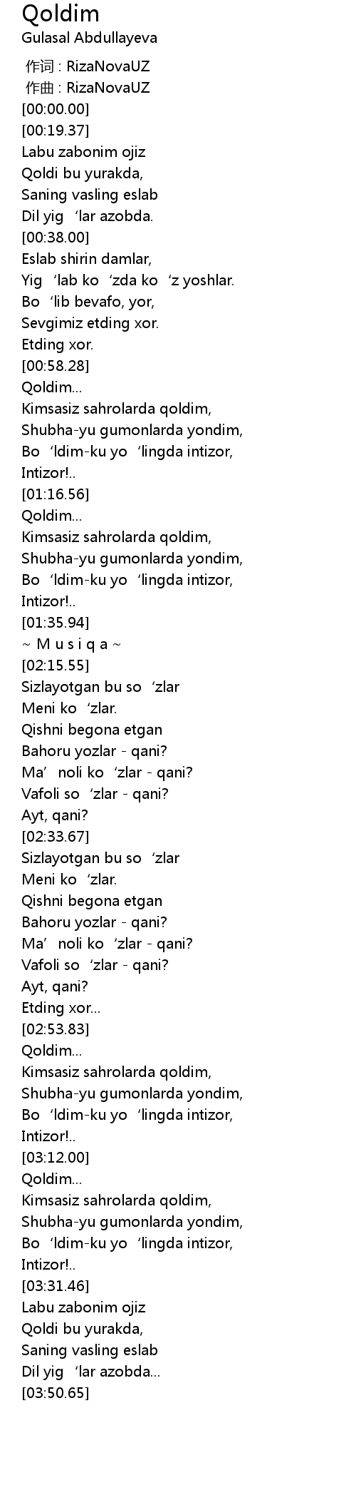 | [02:53.97] | Qoldim... |