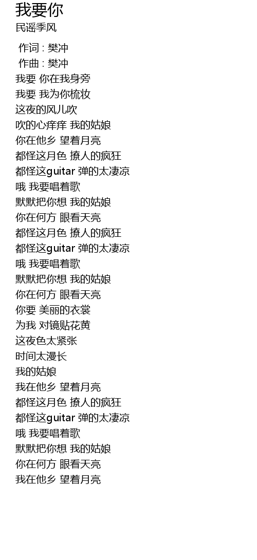 | [00:00.000] | 作词 : 樊冲 |