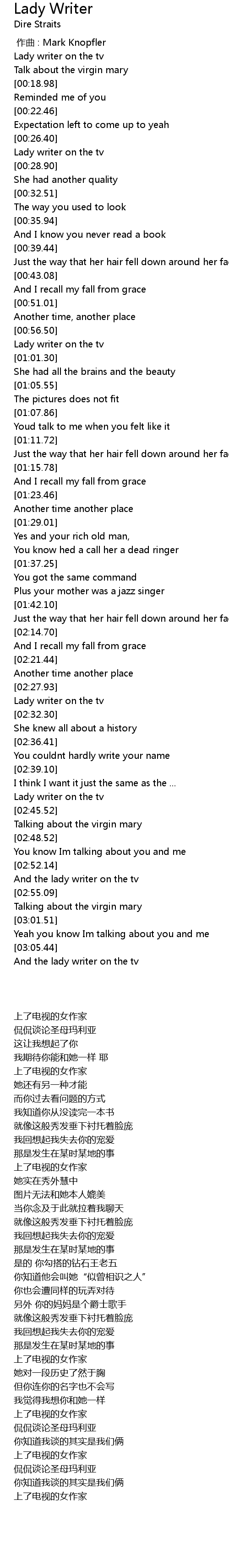 | [00:00.00] | zuo qu : Mark Knopfler |