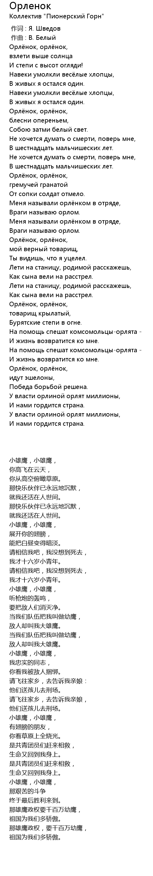 Орлёнок, орлёнок, |
