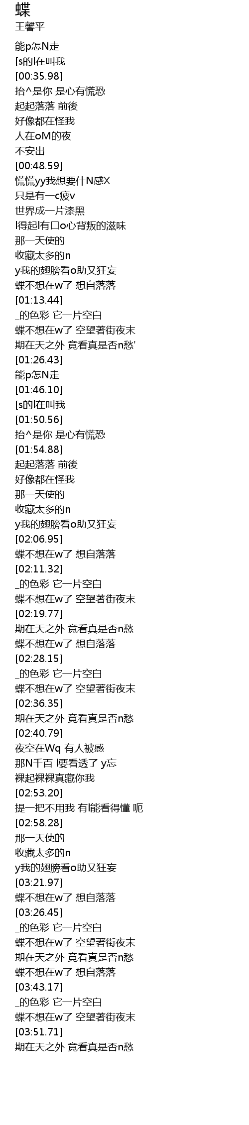 | [03:22.60] | 蝶不想在w了 想自落落 |