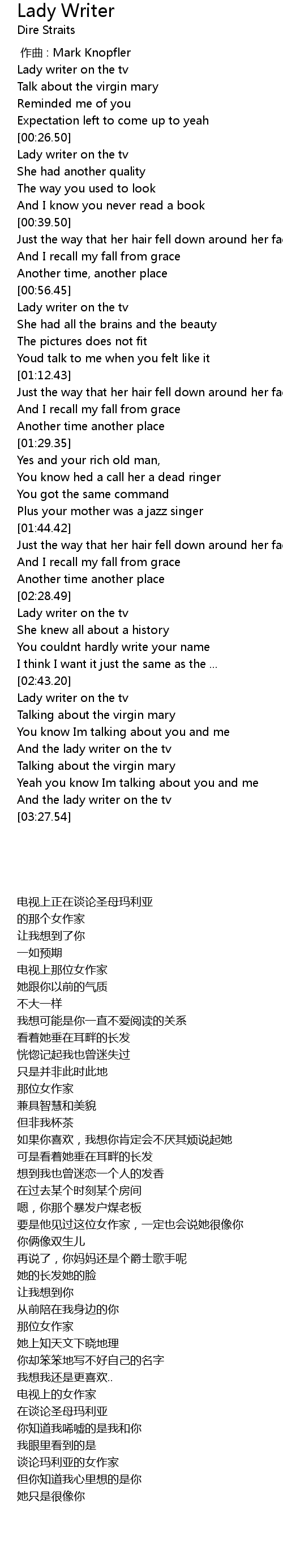 | [00:00.00] | zuo qu : Mark Knopfler |
