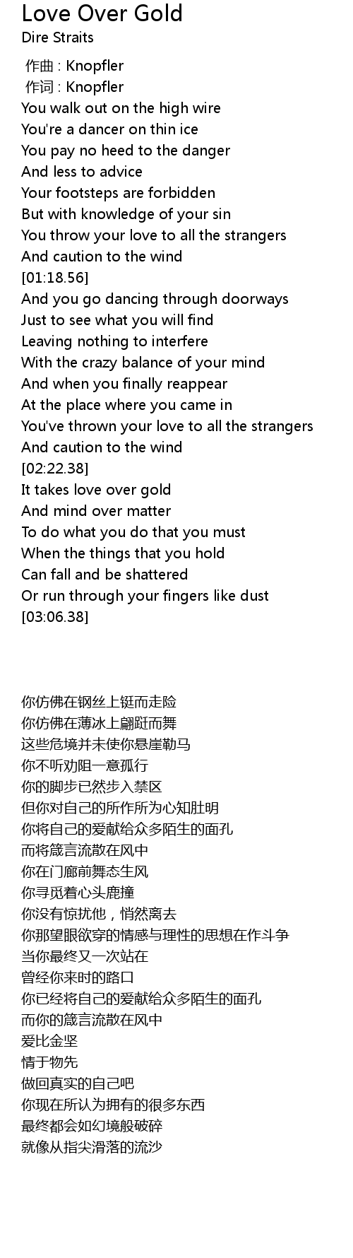 | [00:01.00] | 作词 : Knopfler |