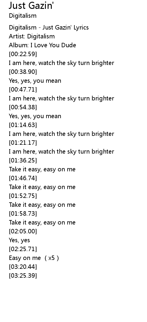 | [00:00.00] | Digitalism Just Gazin' Lyrics |