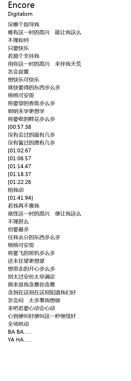 | [02:40.91][01:22.26] | 一到就结束愈要将兴奋再提高* |