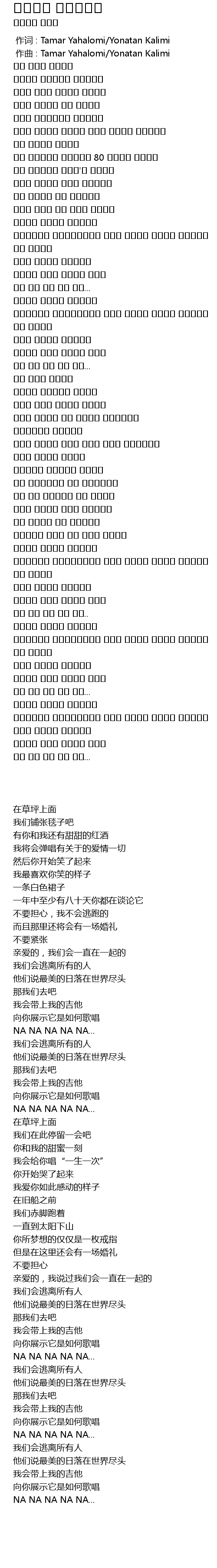 作词 : Tamar Yahalomi/Yonatan Kalimi |