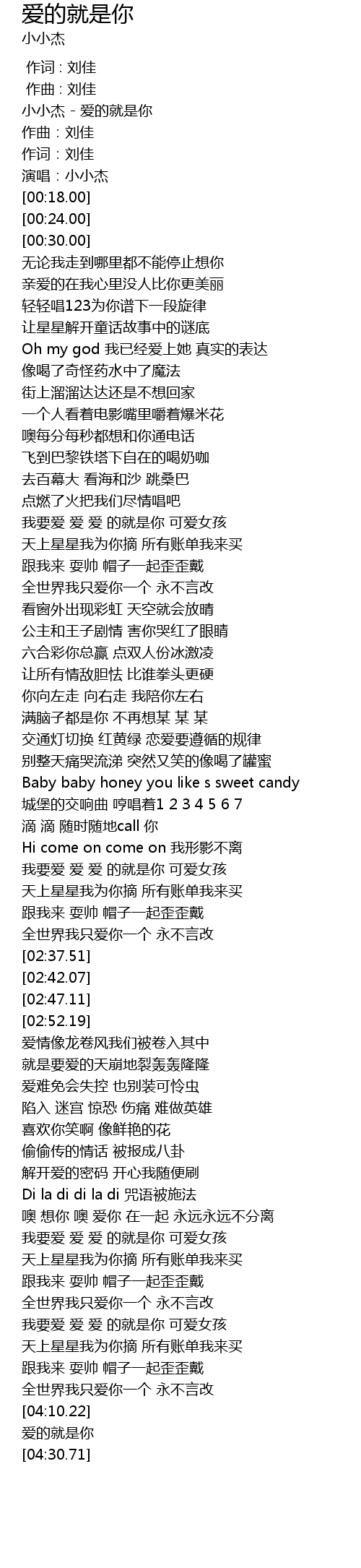 | [03:26.98] | 我要爱 爱 爱 的就是你 可爱女孩 |