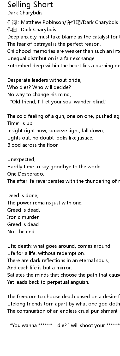 | 作词 : Matthew Robinson/许惟翔/Dark Charybdis | |