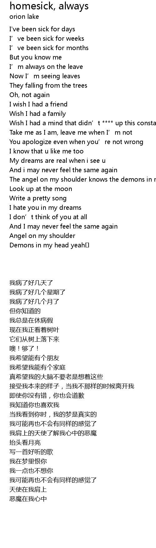 | Song | homesick, always |