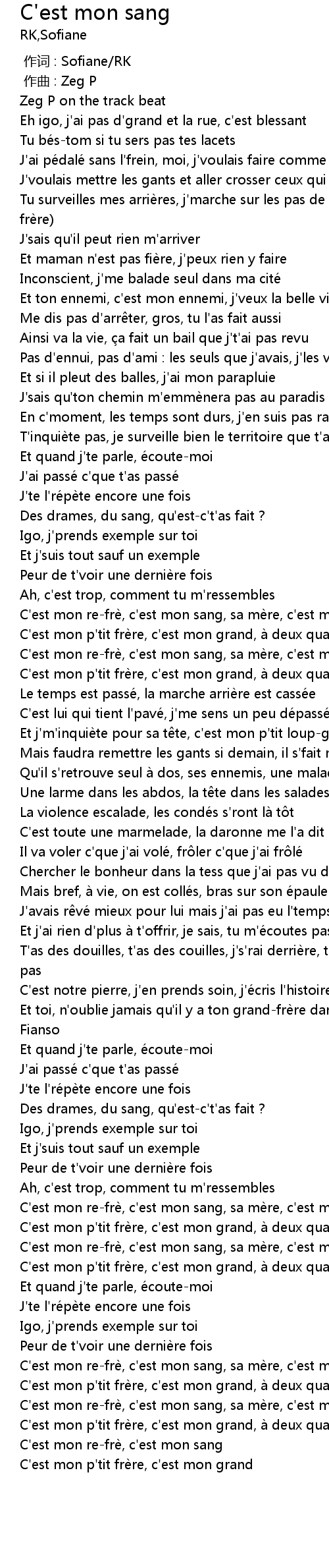| [02:40.96] | C'est mon re-frè, c'est mon sang, sa mère, c'est ma mère |